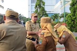 Kot Bekasi, zonainformasinew.com – Apel yang dirangkaikan kegiatan Halal Bihalal di lingkup Pemerintah Kota Bekasi pada pagi ini dihadiri oleh Wali Kota Bekasi, Tri Adhianto bersama Ketua TP PKK Kota Bekasi, Wiwiek Hargono serta Wakil Wali Kota Bekasi, Abdul Harris Bobihoe beserta Wakil Ketua TP PKK, Wury Handayani menjadi momen silaturahmi usai bulan suci Ramadhan.