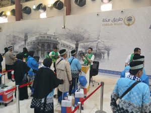Selanjutnya, jemaah menjalani proses pemeriksaan keimigrasian Arab Saudi melalui fasilitas layanan Makkah Route.
