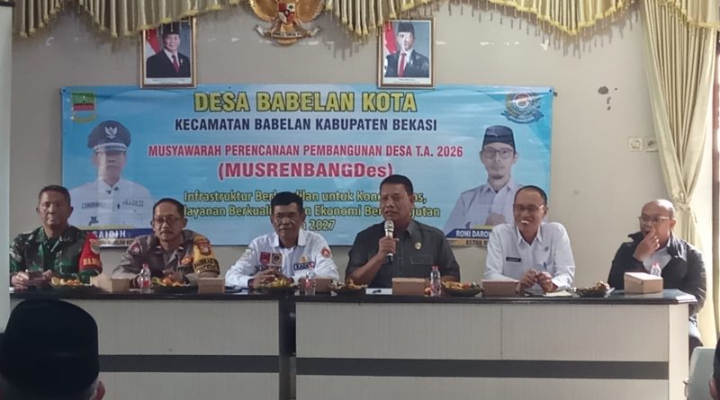 Kabupaten Bekasi, zonainformasinew.com – Pemerintah Desa Babelan Kota menggelar Musyawarah Perencanaan Pembangunan Desa (Musrenbangdes) untuk penyusunan rencana pembangunan tahun anggaran 2027 dengan tema “Infrastruktur Berkeadilan untuk Konektivitas, Pelayanan Berkualitas, dan Ekonomi Berkelanjutan.