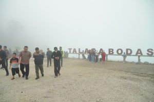 Didampingi Camat Wanaraja, Fahmi Fauzi, dan Kepala Desa Sukamenak, Osin Hasanudin, Bupati Garut mengapresiasi keindahan alam serta tingginya antusiasme pengunjung yang memadati kawasan kawah Talaga Bodas.
