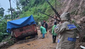 Longsor kategori sedang dan menyebabkan satu unit truk terjebak.