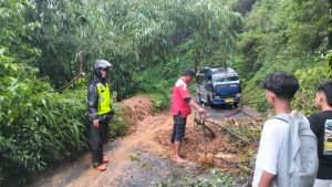 Longsor kategori sedang menutup sebagian badan jalan.