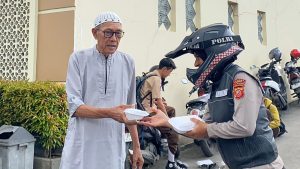 Selain itu, dalam kesempatan yang sama, Polwan juga melaksanakan program Jumat Berkah dengan berbagi kepada masyarakat sekitar Masjid Wakaf H. O Ahmad Yusuf.
