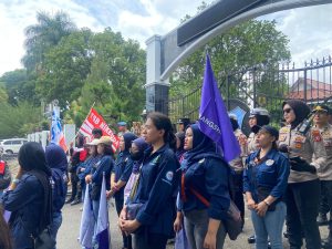 Polwan juga terlihat aktif menenangkan situasi di lapangan saat massa melakukan orasi di depan Kantor Bupati. Pendekatan ramah dan komunikatif membuat suasana tetap kondusif hingga kegiatan audiensi antara perwakilan buruh dan unsur pemerintah daerah selesai dilaksanakan.