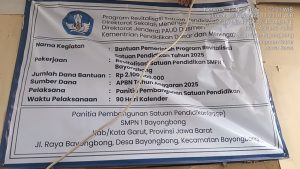 Garut, zona Informasinew.com — Tim JonaInformasiNews.com melaporkan langsung dari SMPN 1 Bayongbong, Kecamatan Bayongbong, Kabupaten Garut, yang saat ini tengah melaksanakan program Revitalisasi Pembangunan Satuan Pendidikan Tahun 2025 dari Kementerian Pendidikan.